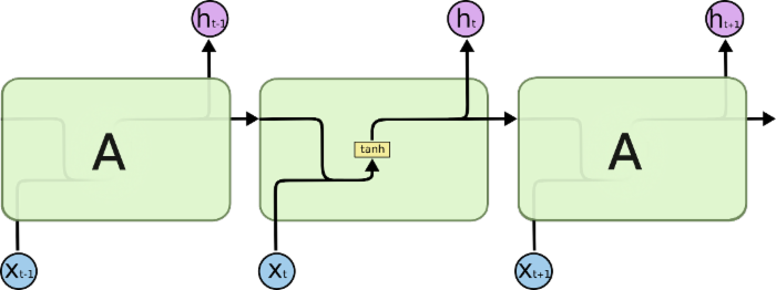 所有的 RNN都具有一种重复神经网络模块的链式的形式,在标准的RNN中,这个重复的模块只有一个非常简单的结构,例如一个 tanh 层。