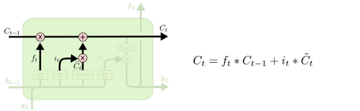 现在是更新旧细胞状态的时间了,\(C_{t-1}\) 更新为 \(C_{t}\)