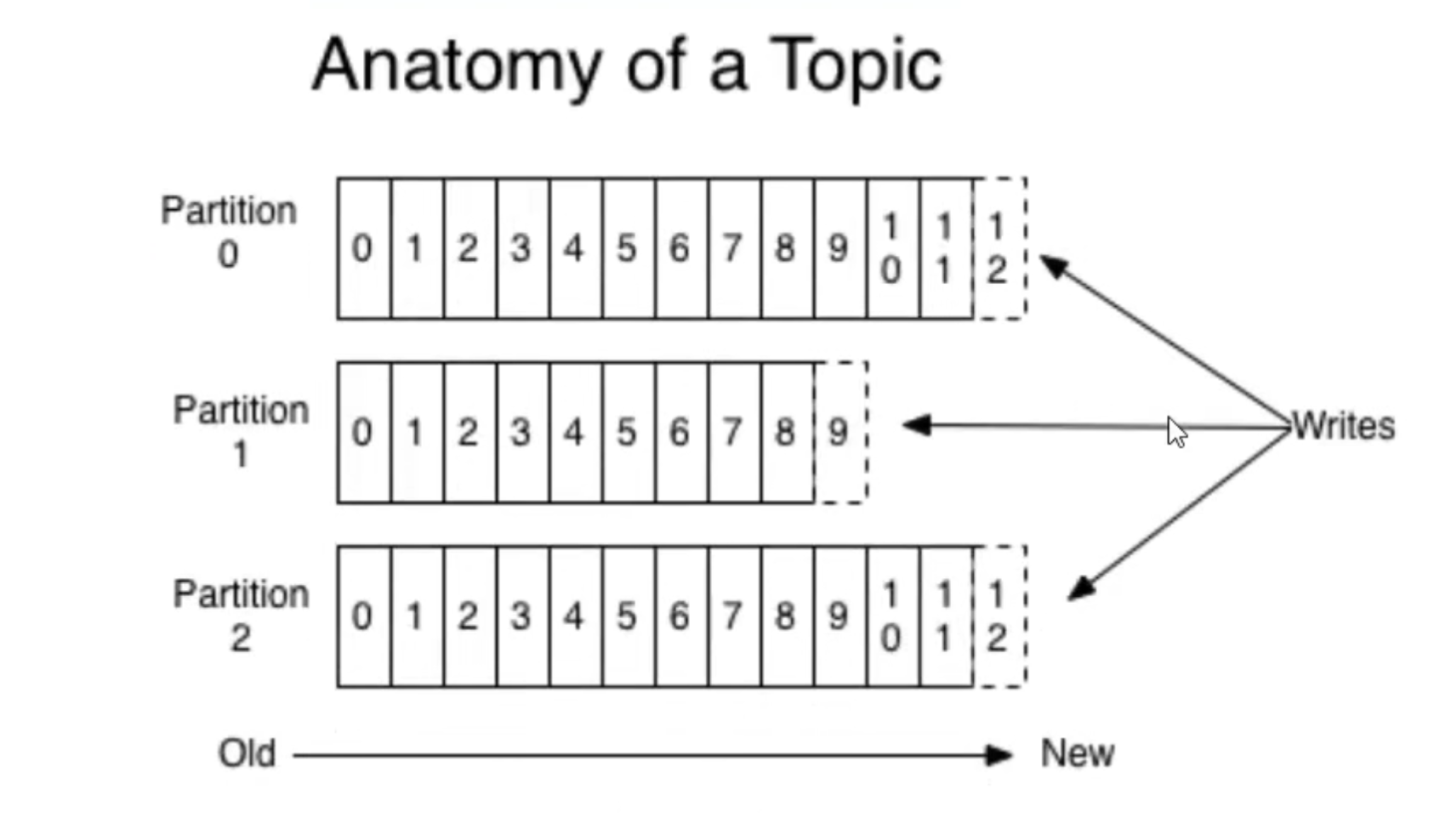- 如果既没有指定partition,有没有设置key,则会采用轮询方式,即每次取一小段时间的数据写入某个partition,下一小段的时间写入下一个partition。