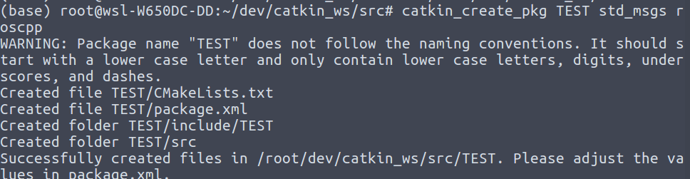 我们将要创建的文件夹位于/root/dev/catkin_ws/src中。要新建文件夹,使用以下命令: