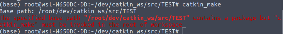 当你在TEST文件夹中试图使用catkin_make编译工具包时,你会看到如下错误: