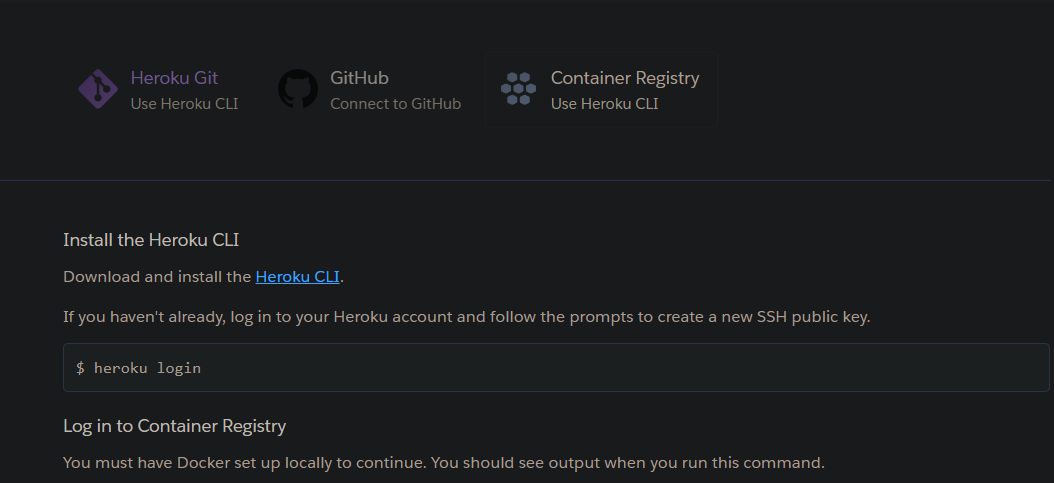 heroku提供两种方式,第一种是部署预先构建的docker镜像到heroku;第二种是使用heroku.yml发布镜像到heroku平台。
