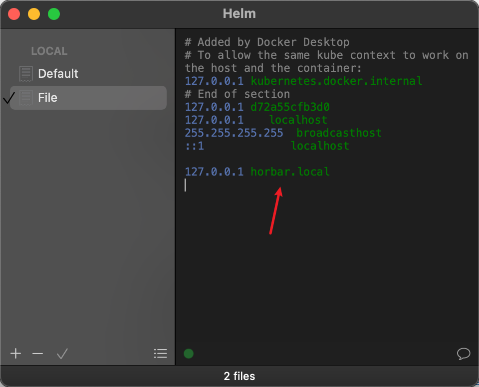 # The IP address or hostname to access admin UI and registry service. # DO NOT use localhost or 127.0.0.1, because Harbor needs to be accessed by external clients. hostname:harbor.local