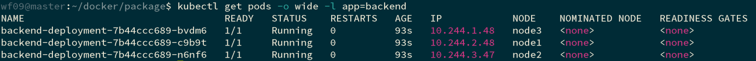 1 | kubectl get pods -o wide -l app=backend |