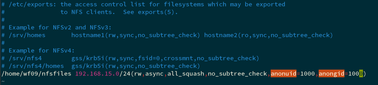 /etc/passwd文件中匿名用户的UID - anongid=1000:指定nfs服务器/