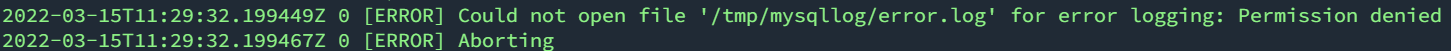 问题的根本原因在于,容器中的mysql用户没有写/var/log/mysql目录的权限,所有才会出现Permission denied.