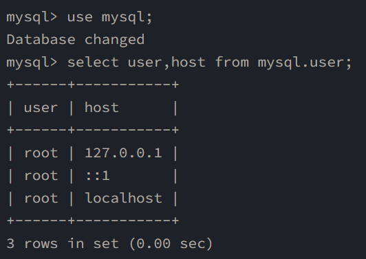 查询默认的mysql.user表,如下表示不允许外网访问,只允许本机访问:
