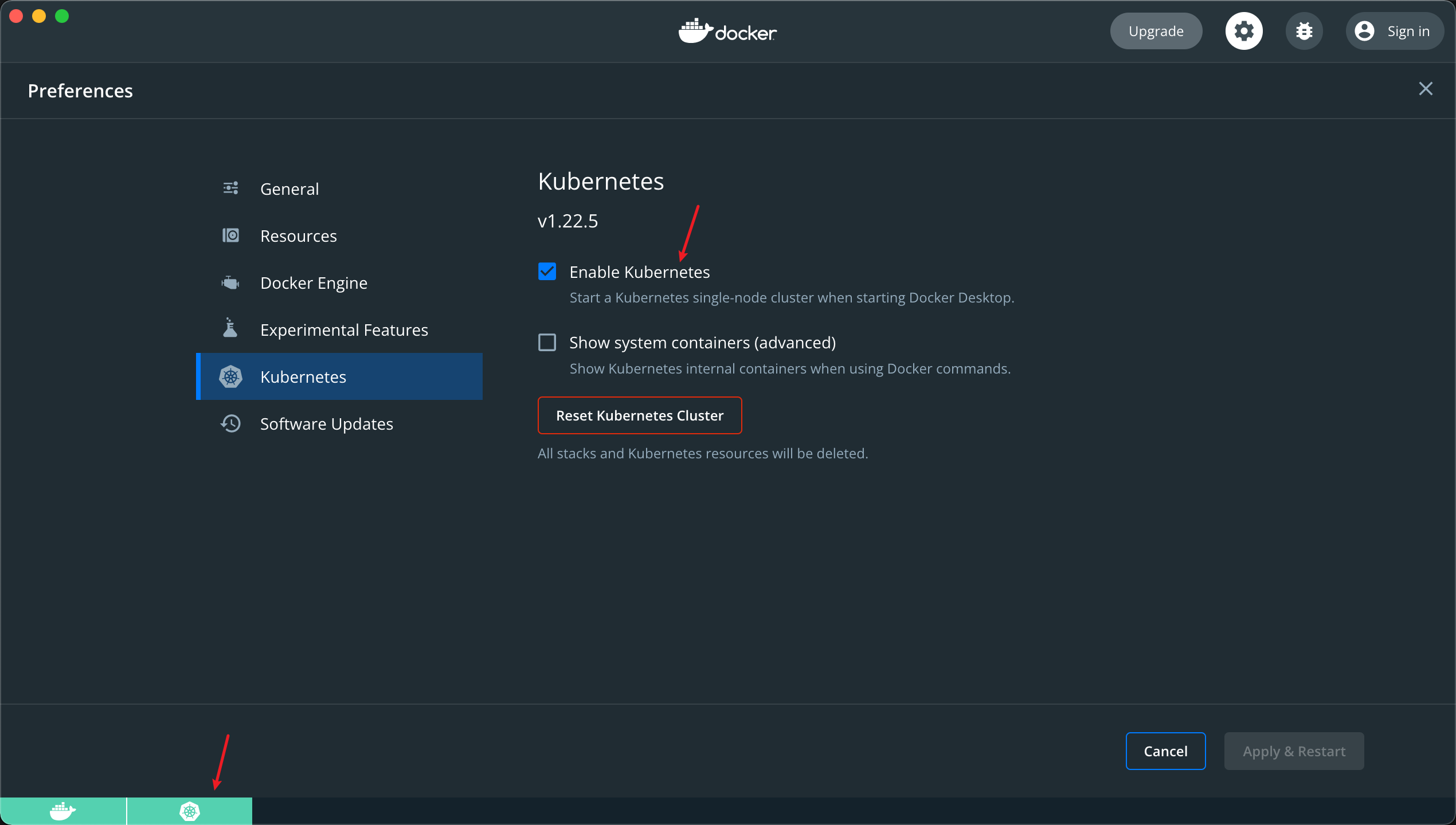 这里是使用的开启了k8s集群的Docker Desktop For Mac。在Windows/Mac上使用K8s in Docker请查看上一篇文章。