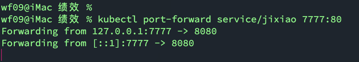 1 | kubectl port-forward service/jixiao 7777:80 |